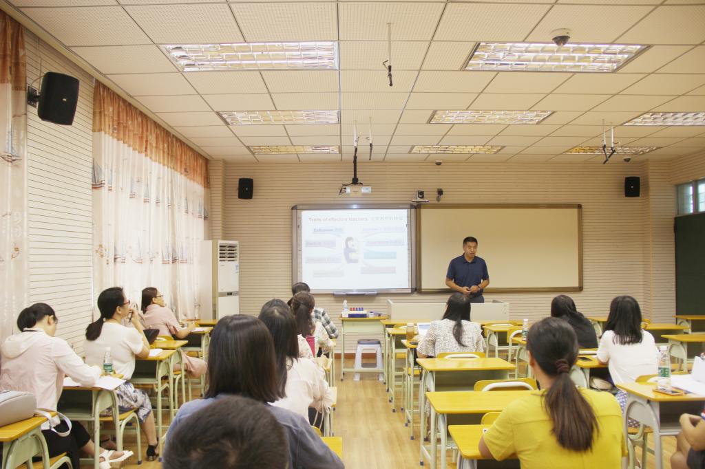 广东省“强师工程”英语学科骨干教师培训班是我校承办的省级项目,其中包括集中面授、调研实习、跟岗培训、网络研修等环节。培训班的50名学员此前在广外完成了集中面授阶段,现分成两组在南水中学的孙新名师工作室和夏湾中学的江学英名师工作室这两个省级名师工作室进行为期五天的跟岗实习。承接此次跟岗培训的名师工作室经过前期深入的调研后,根据其自身特色及多年培训经验,为培训班学员精心安排了跟岗实习课程,带领培训班学员到珠海市的第八中学、第九中学、第十一中学、紫荆中学、文园中学、九洲中学等当地学校进行交流学习,并开展集体备课、双向听课、上课评课、教学案例分析、读书沙龙、课题研究和专题讲座等学习活动,内容丰富,形式多样。