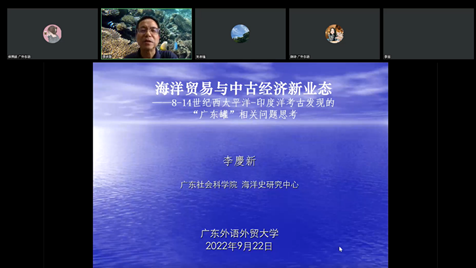 本网讯:2022年9月22日,由广东外语外贸大学人事处、教师发展中心主办,东方语言文化学院、中南半岛研究中心承办的“著名教授论坛第566讲”在线上举行。广东社会科学院的李庆新研究员受邀作了题为“海外贸易与中古经济新业态——8-14世纪西太平洋-印度洋考古发现的‘广东罐’相关问题思考”的讲座。