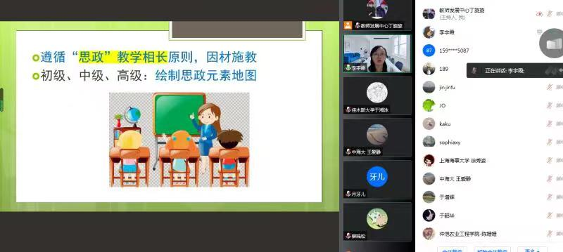 本网讯 10月13日下午14:30,由人事处、教师发展中心主办的“三进”课程思政教学能力系列培训第二讲:“如何将课程思政融入课堂教学 ----以高级日语课为例”在线上顺利举办。该讲座由李宇霞老师主讲,从课前准备,课内讲解,课后作业三大方面,详细讲解如何从思政角度上好一节日语课。