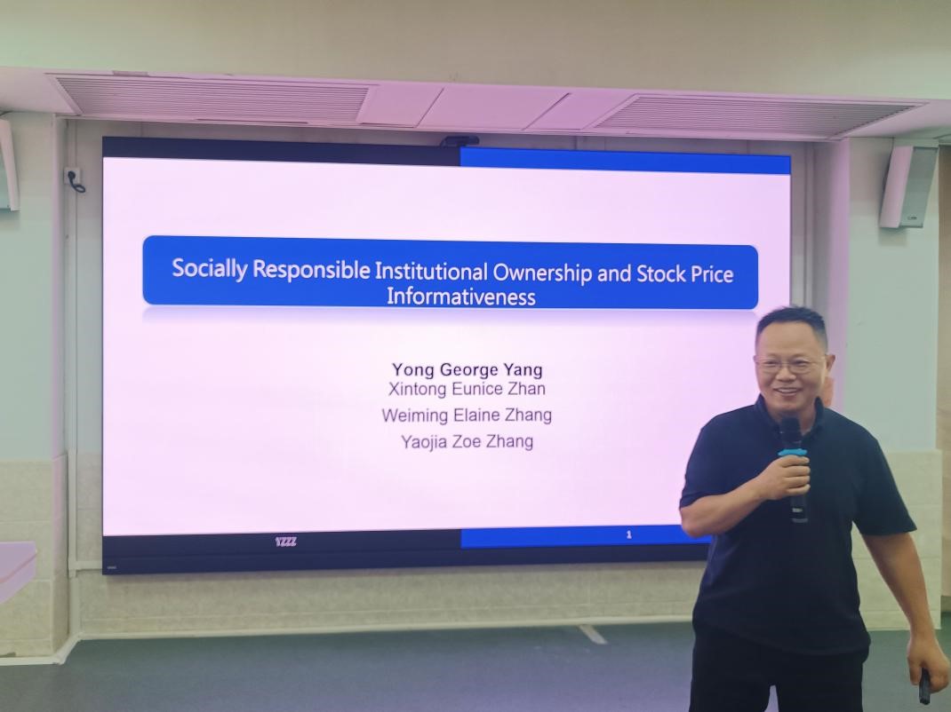 本网讯 2024年10月31日下午,会计学院D座312会议室举办了著名教授论坛第669讲。本次讲座由人力资源部(教师发展中心)主办,会计学院承办,并荣幸地邀请到杨勇教授作为主讲嘉宾,王艳教授主持了本次讲座。杨教授就“社会责任机构所有权与股价信息”这一主题展开深入探讨。作为香港中文大学会计学院院长及终身教授,杨勇教授的研究领域广泛,涵盖公司治理、信息披露、企业社会责任以及财务信息中介等多个方面。