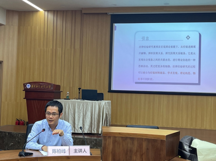 在主题报告环节,陈柏峰教授从经验材料储备、田野的学术发现、理论构思的性质和任务、理论构思的重点、理论创造的物化、经验研究的心理机制等方面介绍了法律经验研究的逻辑进路。他指出,法律经验研究围绕理论储备和田野调研经验两方面展开,需要在宏观理论前提下,从经验进路展开解释,辨析因果关系,探究因果关系链条。经验材料的积累是问题意识产生的基础,理论创造所必需的学术发现,依赖于经验材料。经验材料是理论创造的第一要素,也是经验研究过程的起点。法律经验研究方法的总结和透视,可以帮助研究者意识到学术创新如何从田野中产生,从而更有方法论自觉,进而严肃对待田野调研,有效生发问题意识,科学进行机制分析。