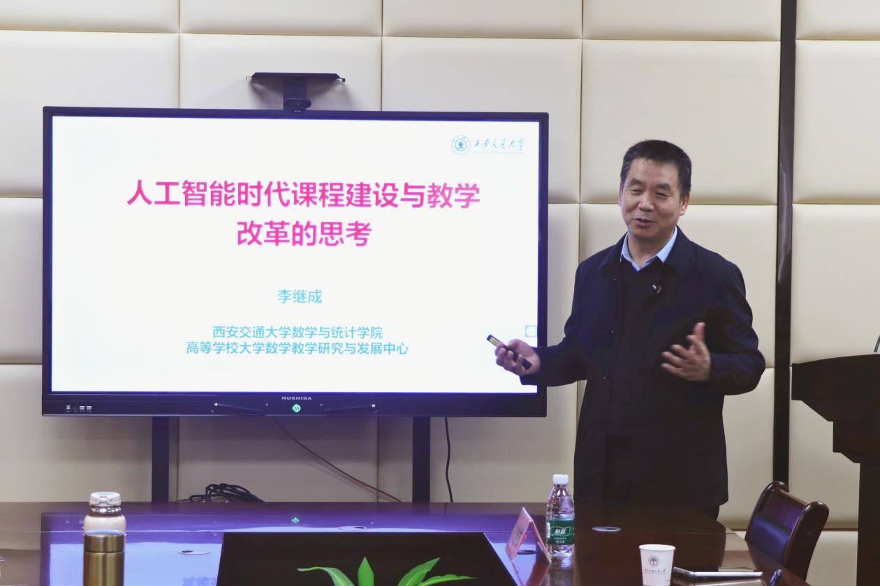 李继成教授在讲座中围绕AI赋能教育教学变革的内涵、机遇、挑战及启示等内容介绍了西安交通大学的课程建设和教学改革历程。他指出,在人工智能时代,高等教育正面临前所未有的变革和创新,AI课程是未来课程建设的重要方向,广大数学教师需要拥抱人工智能技术。而人工智能技术在知识生成、知识问答、资源获取等方面具有便捷性,未来教师应从转变教学理念、创新课程内容、重构教学模式、构建评价体系等方面着手,科学运用人工智能技术开展数学统计类基础课程的教学改革和实践,激发学生的学习兴趣,提高学生的创新能力和学习获得感,以适应人工智能技术对课程建设和教学改革带来的新机遇和新挑战。