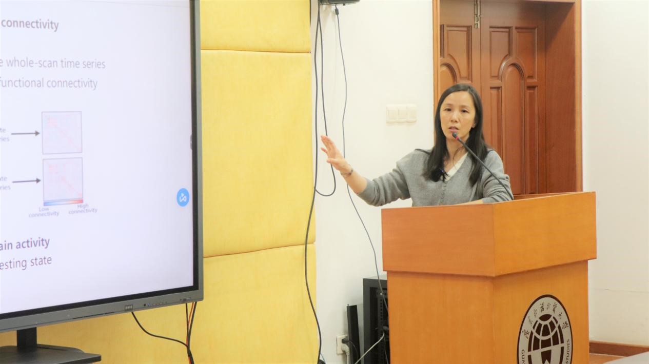 老年抑郁症是指符合重度抑郁症诊断标准的老年个体,或首次在中年或晚年出现临床显著的抑郁症状。讲座中,郭水霞教授详细介绍了她的研究团队的最新研究成果。她提到,团队使用静息态功能磁共振成像对老年抑郁症患者和健康对照组进行扫描,并采用隐马尔可夫模型研究老年抑郁症患者的大脑动态重组与过渡模式。研究表明,大脑状态解码揭示了与老年抑郁症相关的大脑网络及其过渡模式的独特变化。这些发现加深了对大脑功能障碍的理解,并为老年抑郁症的神经机制研究提供了新的视角。随后,郭水霞为与会教师作了数统学科的国家自然科学基金项目申报指导。