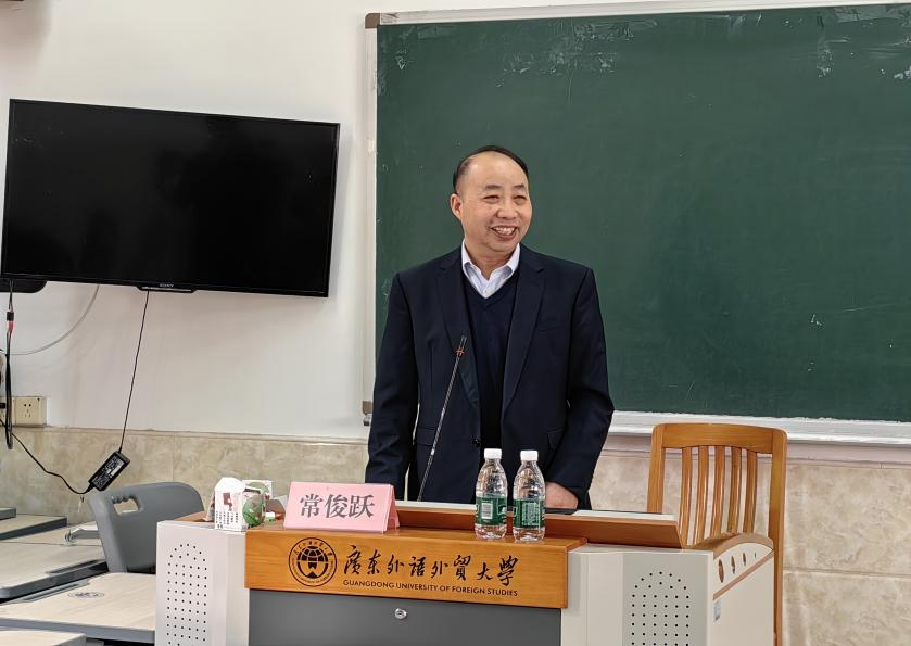 本网讯 2025年11月27日上午10时,由广东外语外贸大学人力资源部(教师发展中心)主办、广东外语外贸大学英语教育学院承办的著名教授论坛第722讲在大学城校区教学楼D311顺利举行。本讲座特邀大连外国语大学二级教授、浙江外国语学院资深教授、博士生导师常俊跃主讲,围绕“一硬,三通——外语专业区域国别学教育的探索与反思”进行深入分享。