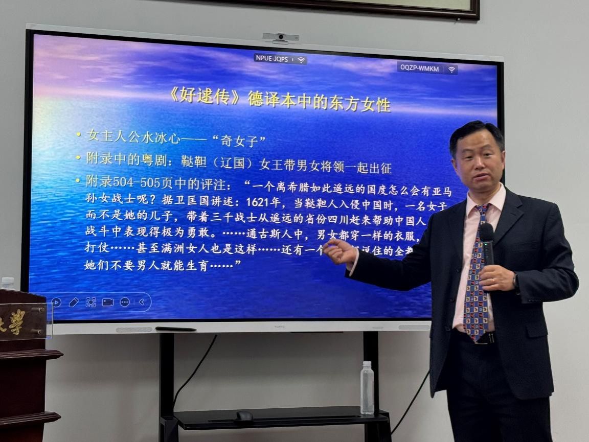 以《好逑传》德译本、布莱希特《四川好人》等经典文本为核心,谭渊教授深入剖析了德语文学中 “亚马孙女战士”“四川女英雄” 等典型女性形象的生成逻辑。他指出,这些形象既融合了秦良玉等历史人物的巾帼风采,也吸纳了 “女儿国” 等民间叙事元素,是欧洲对东方女性的想象性建构,更成为中国文化软实力向德语世界传播的重要载体,推动了东西文明的交流互鉴。