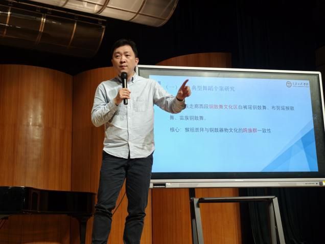 讲座中,针对“点”的视角,胡教授重点解读了近几年来深入民族走廊中、西、东段的舞蹈文化田野调研积淀,通过跨学科的分析框架,全面阐释了长鼓舞文化区文化互融的形态特征、铜鼓舞文化区的跨族群一致性、采茶舞文化区中的文化涵化的重要观点,清晰勾勒出华南民族舞蹈文化在廊道与流域空间中交融共生、不断发展的鲜活图景。