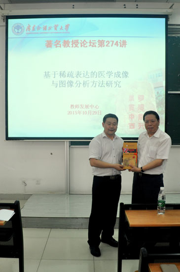 本网讯 10月29日上午,南方医科大学医学成像技术研究院陈武凡教授应邀做客我校,在南校区给我校师生带来题为“基于稀疏表达的医学成像与图像分析方法研究”的学术讲座,讲座由思科信息学院院长蒋盛益主持。