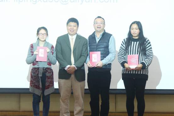 最后,许教授为提问的观众颁发奖品并合影留念,印尼语系的蔡金城教授作为东语学院代表向许教授赠送了纪念品。至此,本次讲座圆满落幕。