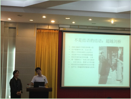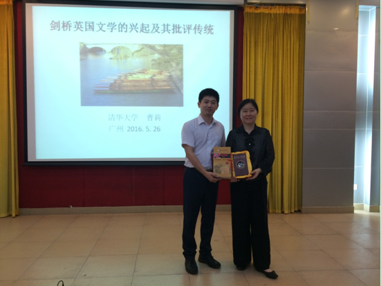 熊涛副院长首先向大家隆重介绍了本次论坛的主讲人——曹莉教授,她博士毕业于剑桥大学,现任清华大学人文学院外文系教授、博士生导师、欧美文学研究中心主任,主要从事20世纪英美文学与批评理论、素质教育和通识教育研究。熊涛副院长代表广外英语教育学院向曹莉教授赠送了礼品,热烈欢迎她的到来。