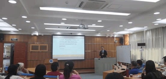 2019年11月4日上午 10:10-12:00,东京外国语大学语料库语言学教授投野由纪夫(Tono Yukio)在北校区MBA中心103室为大家带来了题为“日本英日双语词典学的用户视角”的精彩讲座。投野由纪夫(Tono Yukio)是东京外国语大学世界语言研究中心主任。他2002年从兰卡斯特大学获语料库语言学博士学位,研究兴趣包括语言定量研究、二语词汇习得、外语教学大纲及教材设计中语料库的应用、基于欧洲共同语言参考标准的教学资源开发等。他曾任亚洲辞书学会主席(2013-2016),现任日本英语语料库研究协会主席。本次讲座由人事处、教师发展中心主办,词典学研究中心承办。