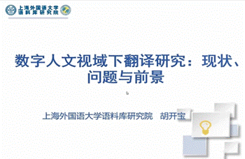 胡教授呼吁,未来学界应当关注原生性数字文本及其引发的翻译问题,积极推进不同种类的翻译研究数据库建设与应用,探索各种数字人文方法在翻译研究中的应用,构建并完善数字人文视域下翻译研究的理论框架。