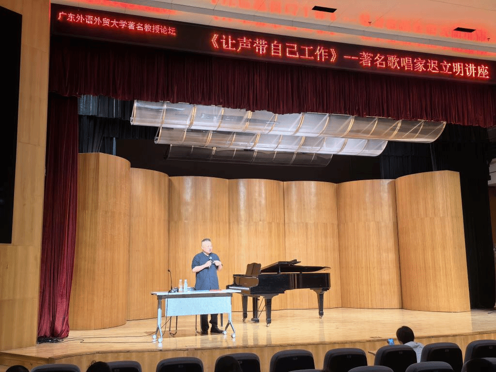 2023年10月19日下午,上海歌剧院著名男高音歌唱家迟立明受邀为我校著名教授论坛活动举办《让声带自己工作》的讲座。本次讲座由人力资源部(教师发展中心)主办,艺术学院承办。
