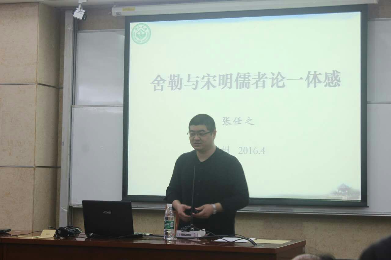 4月13日晚,中山大学哲学系、现象学研究所张任之教授在北校六教B103学术报告厅做了题为“舍勒与宋明儒者论一体感”的学术讲座。张任之教授认为,舍勒的“一体感”或“同一感”的问题域至今并未得到研究者的足够重视,舍勒也偶尔提及老子,但这对于一项跨文化的比较宗教学研究来说仍是远远不够的,特别是在此研究中缺失了整个的儒家传统。