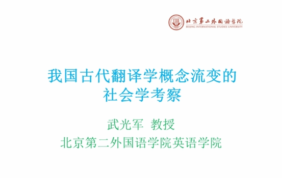 10月23日下午,由广东外语外贸大学人事处、教师发展中心主办、广东外语外贸大学高级翻译学院承办的云山教师沙龙第111讲、岭南译学前沿讲座第213讲在腾讯会议室举行。北京第二外国语学院武光军教授应邀进行了主题为《我国古代翻译学概念流变的社会学考察》的学术演讲。