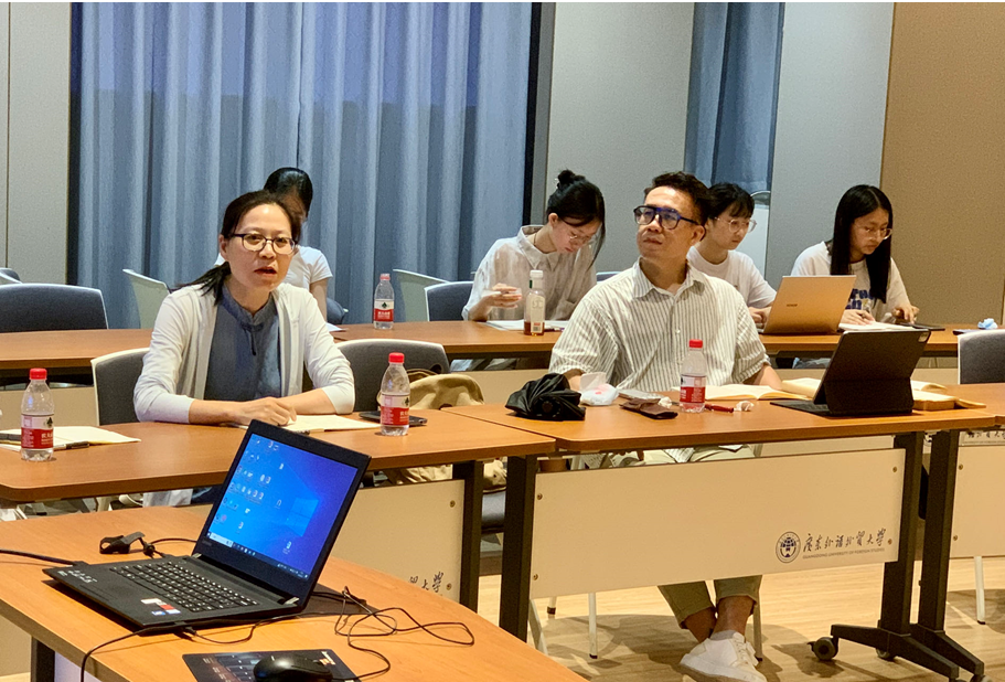 本网讯 2023年6月7日下午14:00,由广东外语外贸大学人力资源部(教师发展中心)主办、广东外语外贸大学外国文学文化研究院人文前沿跨学科研究团队承办、岭南跨学科学术工作坊协办的青年教师沙龙第五讲在广外白云山校区科研楼一楼会议室顺利举行。本讲座由中山大学哲学系谢裕伟博士后、助理研究员和周小龙博士后、助理研究员主讲,广外外国文学文化研究院李日容副教授主持,讲座主题为“近代与德国古典哲学中的物观念”。华南师范大学哲学与社会发展学院刘凤娟教授、中山大学哲学系李逸超副研究员作为评议人,华南师范大学文学院张巧讲师、广外外国文学文化研究院许栋梁助理研究员作为与谈嘉宾参加了此次讲座,此外还有来自研究院和校内外的十余名师生参与交流。