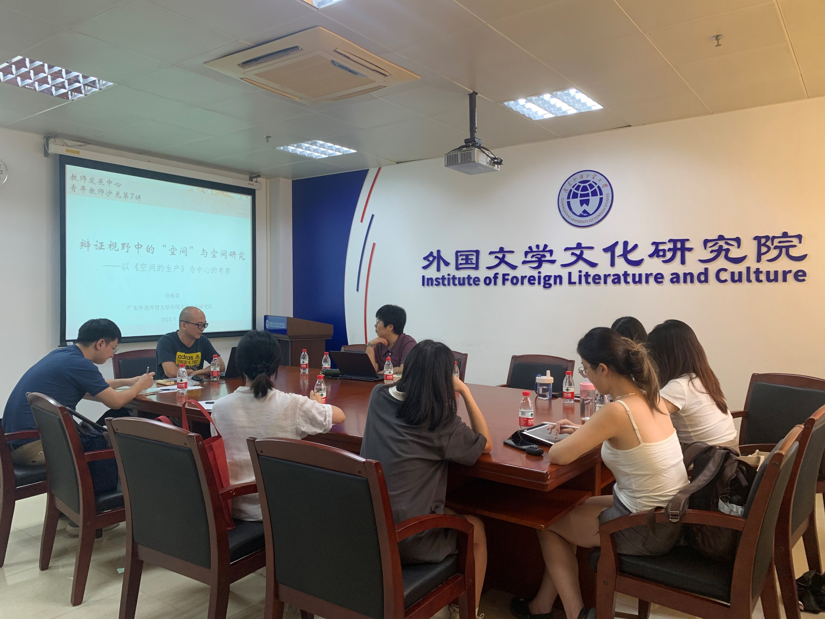本网讯 2023年6月20日下午14时,由广东外语外贸大学人力资源部(教师发展中心)主办、外国文学文化研究院承办的青年教师沙龙第7讲在广外白云山校区第七教学楼607室顺利举行。本次沙龙主题为“多维视野中的‘空间’问题与空间研究”,由外国文学文化研究院许栋梁博士主讲,外国文学文化研究院李日容副教授、英语教育学院齐佳敏博士作为与谈人出席,来自多个学院的青年教师和硕博研究生十余人参加了沙龙讨论。