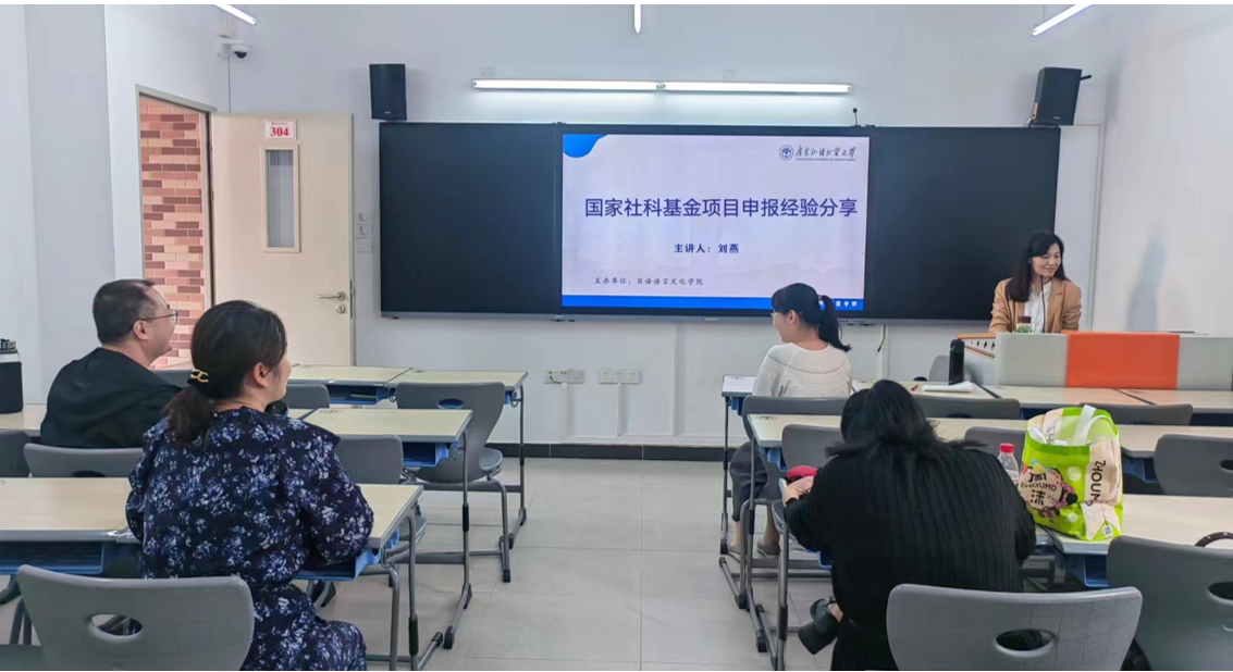 本网讯 2023年11月30日,由广东外语外贸大学人力资源部(教师发展中心)主办、广东外语外贸大学日语语言文化学院承办的青年教师沙龙第13讲顺利举行。本讲座由日语学院副教授刘燕主讲,日语学梁奕华老师主持,讲座主题为“国家社科基金项目申请经验分享”。