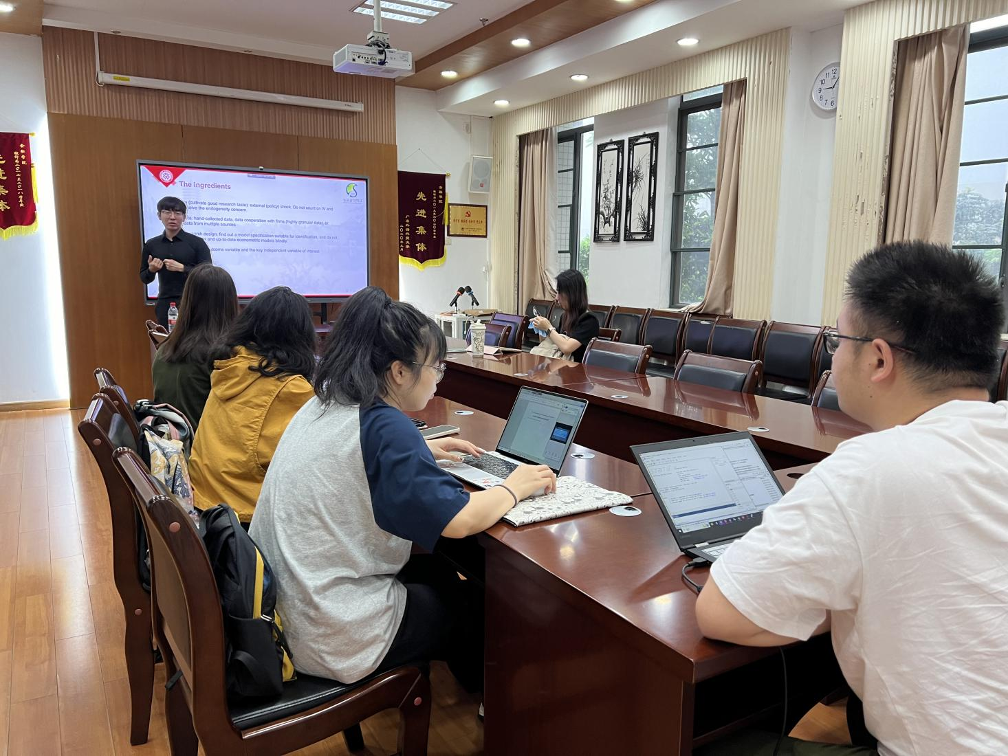 本网讯 4月23日上午,韩国成均馆大学金融学副教授、北大国发院访问教授边文龙老师作客青年教师沙龙第十九讲,在大学城校区院系楼401会议室进行了以“How to do good research in corporate finance and FinTech?”(如何做好公司金融和金融科技相关研究?)为主题的精彩讲座。本次讲座由人力资源部(教师发展中心)主办,金融学院承办。
