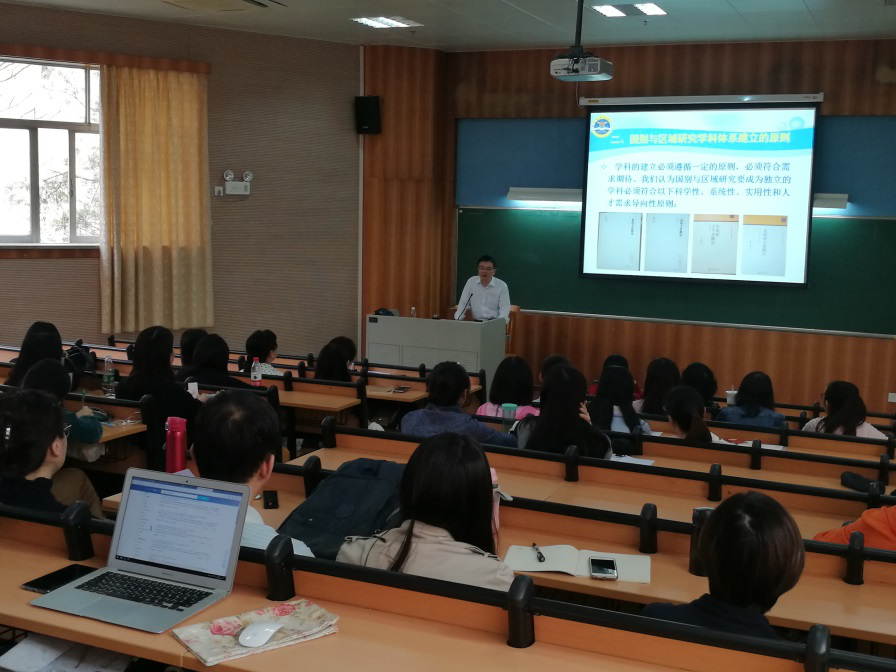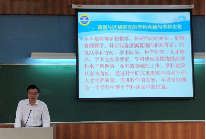 本网讯 2018年11月30日下午,信息工程大学洛阳外国语学院首席教授钟智翔在七教107为我校师生带来“国别与区域研究学科体系的建立与本科实用型国别区域人才的培养”主题讲座。该讲座由人事处、教师发展中心主办,非通用语种教学与研究中心承办,也是非通用语种教学与研究中心本学期“名师面授”非通用语教师培训计划系列讲座之一。
