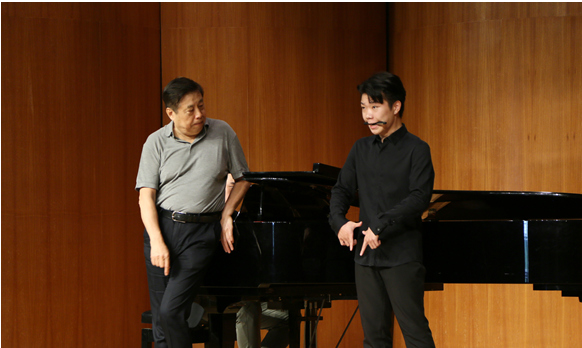 在讲座中,赵登营教授不仅强调声乐演唱的学习需要与“呼吸”“喉咙”“共鸣”“语言”这四点紧密结合,还通过生动的亲身示范以及对学生现场演唱进行深入浅出的指导,让师生们对声乐演唱技术难点有了更直观地认识,也更清晰地感受到了声乐演唱中的呼吸、发力等关键技巧。同时,赵教授还结合自己多年的舞台经验和教学经验,分享了宝贵经验,让在座师生受益匪浅。