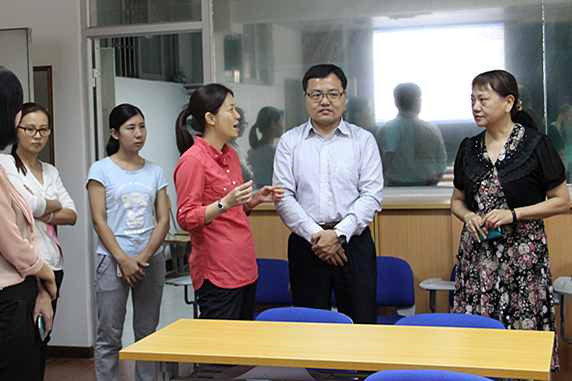 随后,双方参观了微格教室,就微格教室的设备、仪器等作了深入的交流,现场气氛热烈。