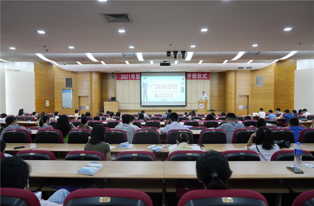 本网讯 9月1日上午, 2021年新入职教职工岗前培训开班仪式在北校区图书馆报告厅举行。校党委书记隋广军为新入职教职工讲授“第一课”。仪式由副校长刘海春主持,党委宣传部、教师工作部、人事处、教师发展中心等单位负责人及新入职教职工参加。
