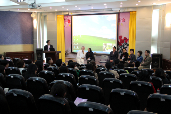 王蔷则围绕“从语言教师到教师培育者——需要怎样的知识库”进行了发言。王蔷指出,她的研究紧紧围绕着两个问题:“一个外语教师培育者需要什么知识及他/她如何知晓”、“语言教师培育者如何看待语言教师及其培育者的区别”展开。第一个部分以她自身经历与感受出发对两个问题进行了探讨。她简单介绍了自己从教师到资深教师培育者的经历,她从一个knower(知晓者)进步成为一个knower, facilitator, technically reflective practitioner(知晓者、推动者及严格意义上的反思性实践者)进而成为一个knower, resource provider, stimulator(知晓者、资源提供者及激励者)。她指出,自己的学习来源于书本和实践,来源于学生和同事。而第二个部分则是对6位培育专家的采访的总结、研究。综合两方面后该研究认为教师培育者所需要的知识主要包括态度、技能及性格三方面,这三方面能够塑造一个称职的、研究型的具有发展前景的教师培育者。同时也需要其具备相应而复杂的多领域知识。而这些的获取可以通过理论学习及实践两种方式。研究还认为,只要对于所需知识的疑虑仍然存在,介于达成解决该问题共识和具有复杂、独特性的本地教学环境之间的矛盾就不能化解。