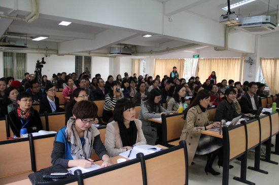 广东省高校外语教师教学发展示范中心主任、我校教师发展中心主任谢文新则向与会者介绍了我校教师发展中心情况。他提到,中心旨在促进教师素质的全面发展,举办了“云山教师沙龙”、“著名教授论坛”、“教师发展论坛”等系列特色活动,多措并举为教师提供服务。