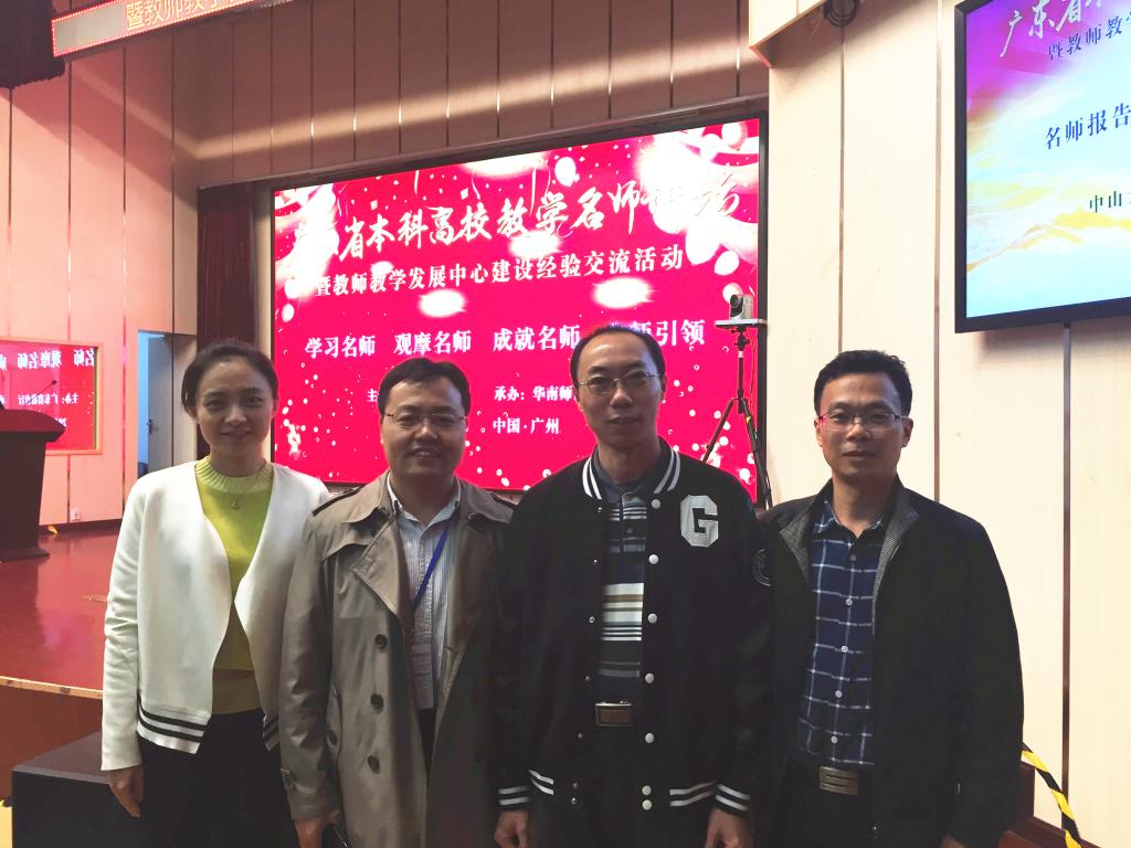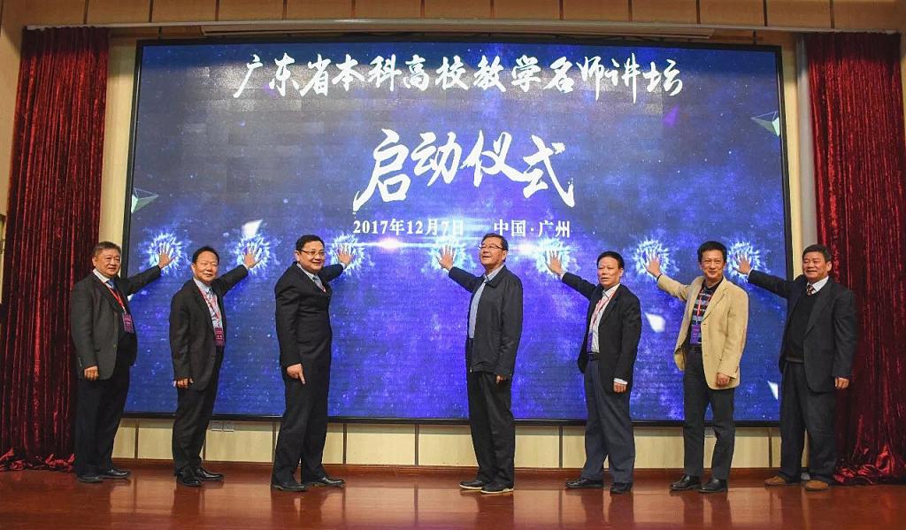 本网讯 12月7-8日,由广东省教育厅主办的广东省本科高校首场教学名师讲坛暨教师发展中心建设经验交流活动在华南师范大学举行。全省高校国家级、省级教学名师代表、教务部门负责人、教师发展中心负责人等200人参加。省教育厅副厅长魏中林出席启动仪式并致辞,省教育厅高教处郑文处长主持仪式。接下来,名师讲坛计划每年举办一场,持续发挥名师群聚效应,增强广大教师教学能力。我校代表省级教学名师郭桂杭教授、教务处袁琦副处长、教师发展中心孙远雷主任及陈思科长出席了此次会议。