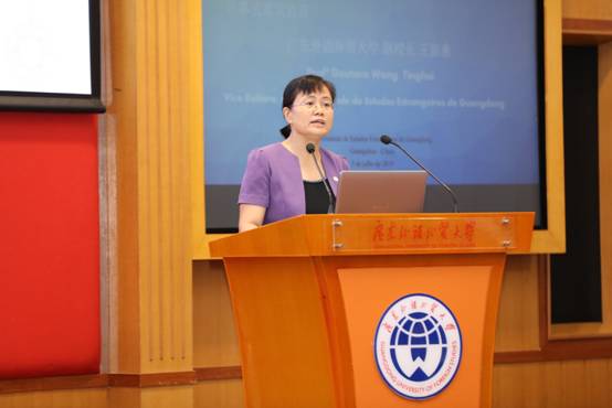 王廷惠在开幕式致辞中首先回顾了广外葡语专业成立十年来取得的丰硕成果,充分肯定此次论坛“是一次促进合作、协同力量、增进同行友谊的精神盛会”。她指出,“一带一路”倡议的不断推进和粤港澳大湾区建设全面发展对中国的葡语语言文化研究,特别是葡语语言对象国研究、中国与葡语国家关系研究提出了新的要求,期待葡语学界为中国与葡语国家交流与合作提供智力支持和人才保障。