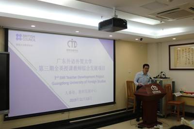 在致辞中,毛国民表示,作为一所国际化特色鲜明的广东省属重点大学,广外近年来在教师国际化、课程教学国际化等方面出台了一系列措施,取得了一定成效。在全英双语课程及教师队伍建设方面,我校仍存在多方面不足,教师利用英语讲授专业课的能力、科研国际化能力仍有待提高,需逐步与国际接轨。而今天举办的EMI项目,更是教师国际化培训优胜劣汰的精品项目。在广外通过国家公派、学校“留奖委”公派等方式大力资助教师“走出去”的同时,也在不断通过合作交流“请进来”,开展教师国际化培训,不断满足教师培训的多样化需求。