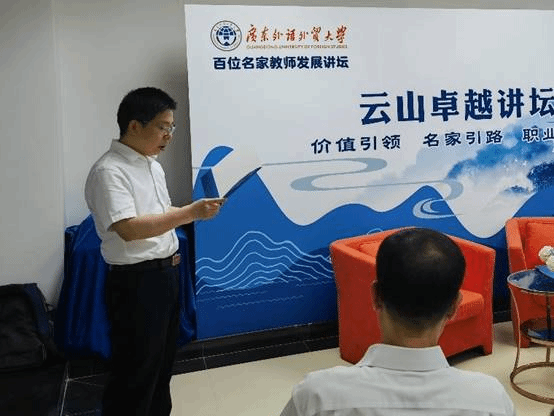 本网讯 4月21日下午,我校教师发展中心成功举办“云山卓越讲坛”第二讲。本次讲坛由广东外语外贸大学大学云山工作室首席专家王战教授主讲,新闻学院何国平教授主持。中心副主任董俊武教授致欢迎辞。西方语言文化学院院长杨晓敏教授及十余位校内青年教师参加了本次讲坛。