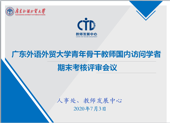 2020年7月3日,下午2:30在教师发展中心培训室2019-2020年度教育部青骨项目国内访问学者期末考核会采用“线上+线下”方式进行。欧阳护华、李明、魏在江三位评审采用线下评审方式,七位访问学者通过腾讯会议进行线上汇报。