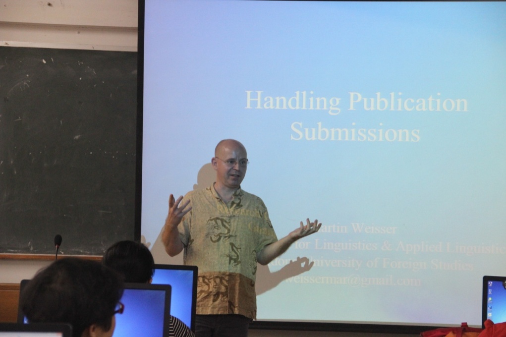 本次活动由来自我校英语教育学院外教Martin Weisser博士负责主讲,在延续上学期的语料库语言学系列活动的同时,增加了论文写作与发表的内容,开设了论文写作与发表暨语料库语言学工作坊,旨在帮助我校中青年教师掌握科学研究方法,提升论文写作水平与发表几率,加深对于语料库语言学的认识与理解,拓展国际视野,实现优质教学、科研资源的有效共享。