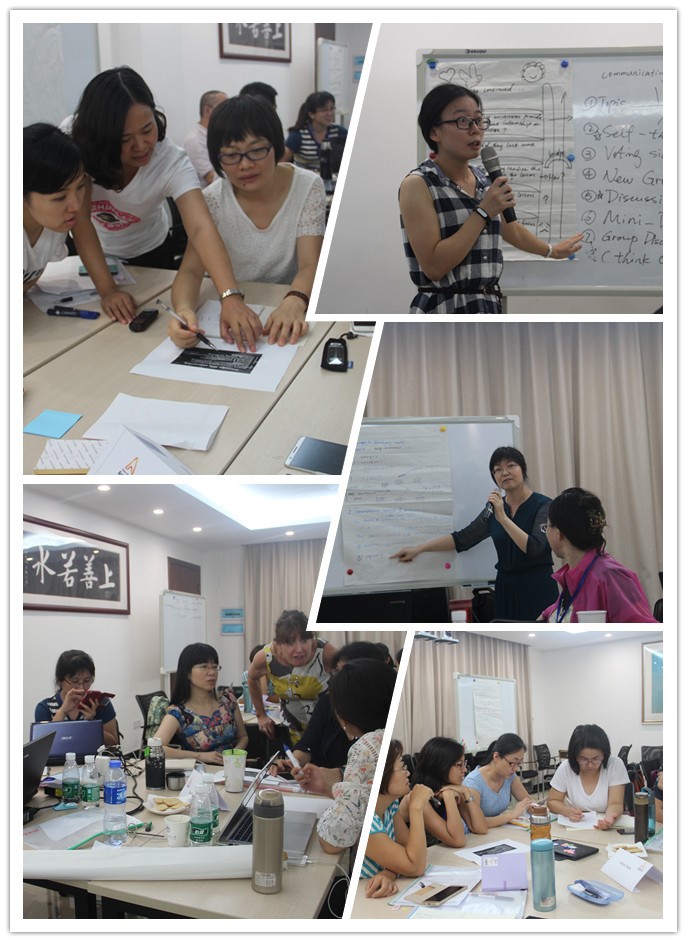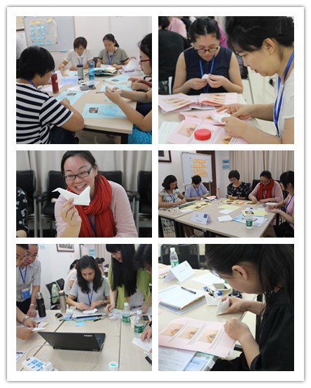 研修课程采取分组小班研修方式进行。课堂上,导师不以“填鸭式”的灌输方式讲解理论或实践操作技能,而是通过一个多彩有趣却不肤浅的课堂互动活动进行启发式教学,使小组内充分利用合作动手的方式,自我发现、自我领悟并自我反思日常教学中的不足。