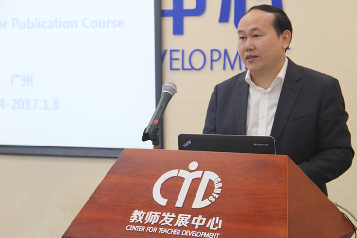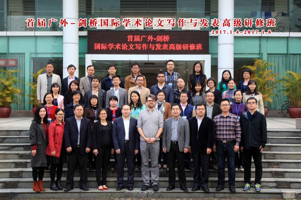 本网讯 2017年1月4日,首期广外-剑桥“国际学术论文写作与发表”高级研修班在我校精彩开班,开班仪式在教师发展中心会议室举行。副校长阳爱民、科研处处长陈彦辉、人事处处长谢文新及英国总领事馆文化教育处代表王雪莹及我校30名教师出席,开班仪式由教师发展中心主任孙远雷主持。