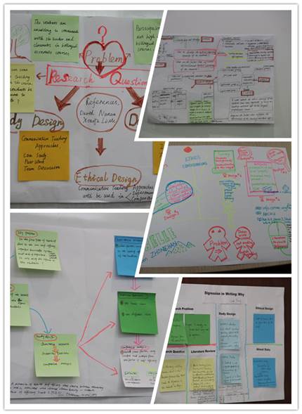 培训首日,破冰活动中来自不同学校不同专业的教师学员相互熟悉,为各自的小组命名,形成“教学学术小团队”。导师指出,在传统的教育观念里,“教学中存在问题”是带有指责性的,人人趋而避之的话题,但从教学学术的角度,“问题”真是任何教学学术甚至学术研究中得以建立的基础。教学学术越来越成为改进教育质量的重要手段,“active learning”、“write to learn”等理论也越来越应用到教学学术当中。教学和学术二者本不应分开,教学学术也不能简单地被认为是教学和科研的融合,教学本为学术(teaching as research)。从教学学术中研究问题的分类入手,导师引导学员从广角入手,深入反思自身教学中一直存疑的一个问题,作为教学学术的研究切入点,并将其贯穿于培训的全过程。