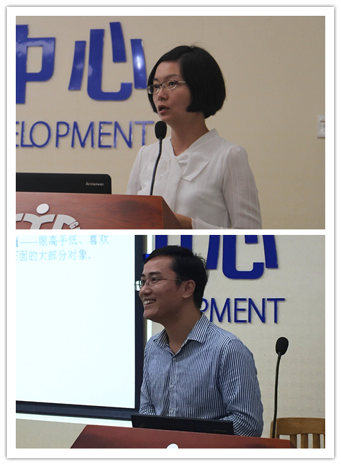 非语言组的导师则着重针对授课技巧给在座学员支招。王焱用简练且精彩的发言,列举了一些自己的教学技巧。她指出,教学的最高境界应是“深入浅出”,教师应该自己先吃透深奥的理论,然后尽力化解为有趣的知识传递给学生。她举了几个有趣的教学案例,并与在场各位教师共勉:“像你最喜欢的老师那样对待你的学生,不要像你最不喜欢的老师那样对待你的学生”;曾成别出心裁,使用创新的技术手段与在座学员进行现场互动。同时,讲述了自己教学历程中得到的教训,并总结了经验。他特别提到,他会在课堂上留下自己的联系方式,课外也会常与学生一起运动,一起用餐。他认为,教师与学生交流非常重要,多了解学生的动态能促进教师的教学质量。