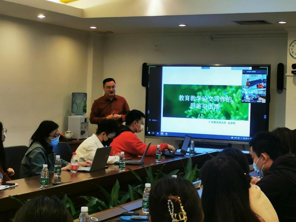 本网讯 3月29日下午,由教师发展中心和学生工作部(处)联合主办的“辅导员成长计划”第11期培训会分别在北校三会、南校一会,以视频会议的方式举行。此次培训会由广东教育杂志社宣传策划部主任龙建刚主讲,围绕“教育教学论文写作的思路及出路”这一主题,与全体辅导员展开深入探讨,学生工作副部(处)长叶开主持活动。