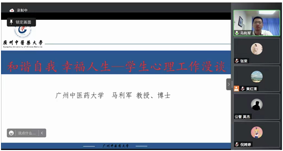 本网讯 2022年11月17日下午,由教师发展中心与学生工作部联合举办的第二期“辅导员成长计划”第9讲“学生心理工作技能”和第10讲“心理课程教学技能”培训活动以线上腾讯会议的形式举行。此次培训由广州中医药大学经济与管理学院副院长马利军教授主讲,由学生工作部副部长赵观音主持。培训面向我校专兼职辅导员,全校共82位老师参与培训。