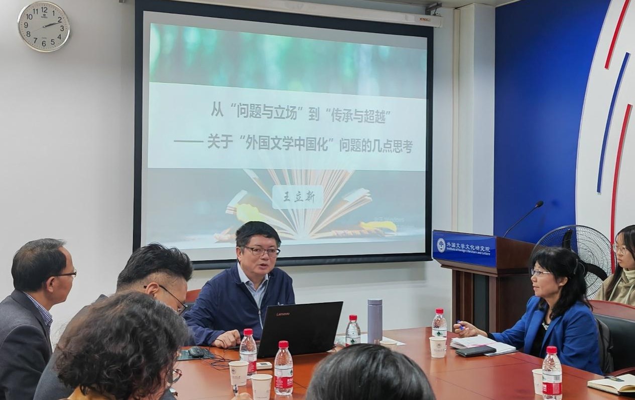 王立新教授首先对文学界近年来有关外国文学中国化问题的研究现状进行分析,在指出目前中国学者已取得重要成就的同时,也提醒了学界同仁应注意可能存在的问题。王教授表示,对于外国文学异质性的深入探讨更能体现出其中国化的价值和意义,外国文学的中国化既需要尊重域外文学的主体性和特点,也必然会凸显中国外国文学学者的主体性立场和问题意识。