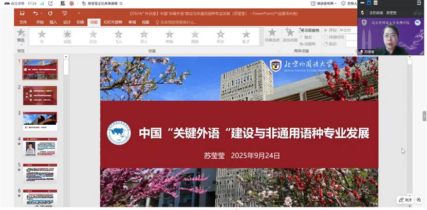 本网讯 2025年9月24日下午,由广东外语外贸大学非通用语教学与研究中心、人力资源部(教师发展中心)联合主办,东南亚学院(东南亚研究院)承办的“非通用语中专家系列讲座”第二十二讲成功举办。