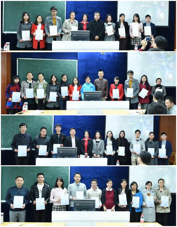 本网讯12月29日下午,为期一学期的2016年秋季青年教师微格教学训练营迎来了最后一节课,教师发展中心主任孙远雷、东语学院副教授谈笑、新闻学院播音与主持艺术系主任李峻岭、教育学院老师曾丹以及近50名学员齐聚二教416微格教室,共同举行结营仪式。