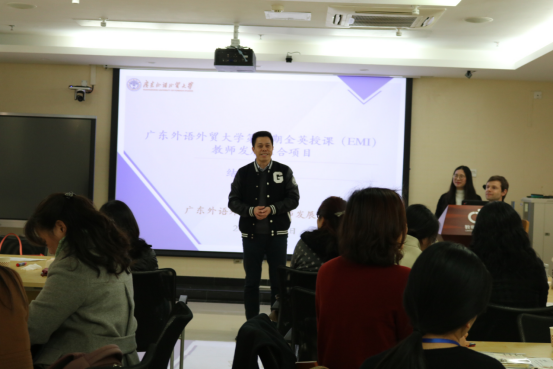 本网讯 2019年1月9日下午,我校2018年全英授课(EMI)教师综合发展项目结业仪式在广外教师发展中心105会议室举行,教师发展中心主任陈兵、导师弗雷迪(Feddy)、来自12个学院的20名教师学员和3名校外教师学员出席结业仪式。