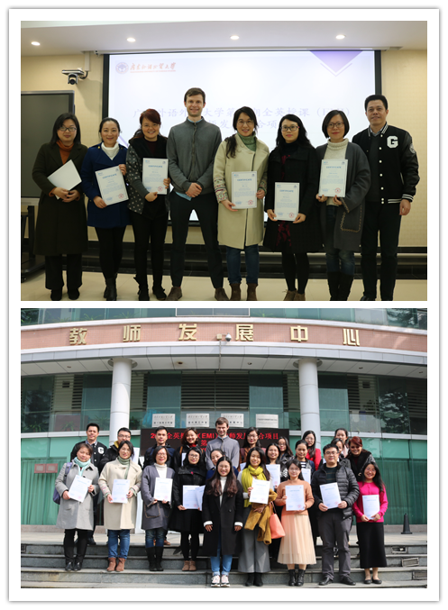 2018年EMI项目于2018年10月20日开班,历时三个月,分三个阶段进行。第一阶段为2018年10月20-25日的集中面授;第二阶段为2018年10月20-25日的一对一教学实践指导;第三阶段为2019年1月6-9日的集中面授。来自12个学院的20名教师学员以及3名校外教师学员全程参与,完成约120学时的培训,获得EMI结业证书。