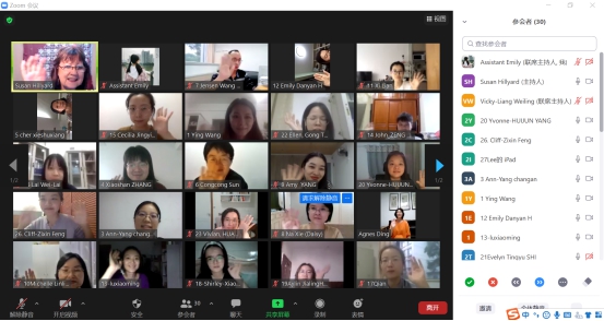 基于前期调研和多次沟通,培训师Susan Hillyard针对我校教师全英教学能力提升的需求,精心设计课程,从全英授课方法论、语言提升授课技巧、教学互动、基于学生需求的全英授课教学设计、专业学习共同体建构、教学反馈六个模块开展在线研修。导师Susan倾囊相授,巧妙地运用互动式引导与研讨、小组讨论与实践、Bloom’s Taxonomy(布鲁姆的目标分类学)等丰富多样的形式有机串联了课程设计、教学技巧、教学语言、解释概念的方法、小组讨论的任务设置、多元学生的课堂管理与课堂气氛的引导等内容,形成了知识点丰富而不失逻辑、讲授及互动相得益彰的EMI培训课程。