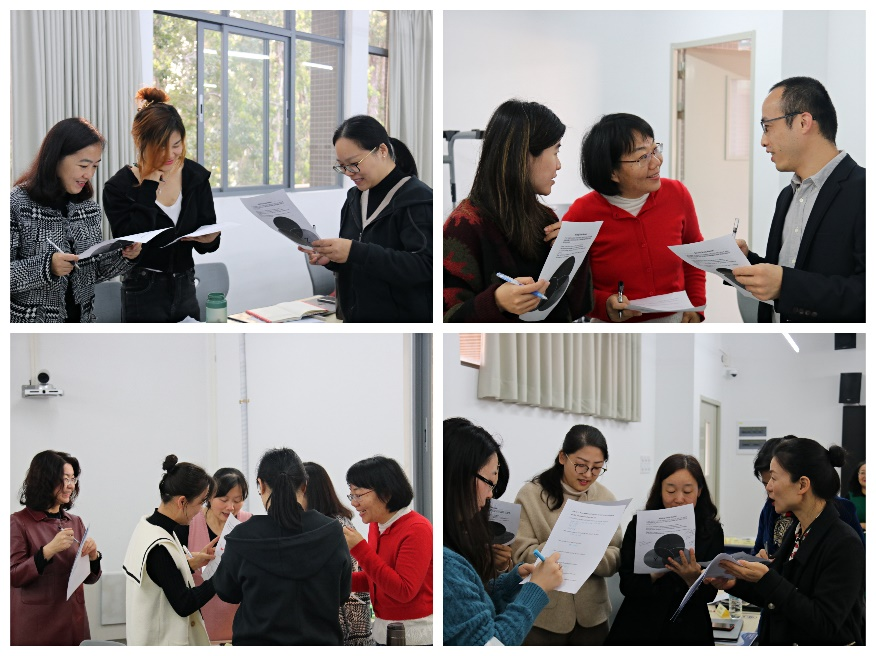 经过精心设计,导师丁凤和杜慧贞将培训分为四个模块,分别为导师讲解与研讨、学员代表微格教学与反思、特邀嘉宾讲座、思想交流会。导师始终秉持“以学生为中心”的授课理念,积极与学员交流探讨,每天都会重新安排学员座位与小组分配,希望学员每天参加培训时都能有不一样的感受,与不同的同事进行交流想法,碰撞出不一样的火花。